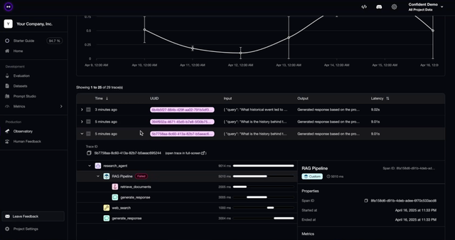 Confident AI (the deepeval platfrom) offers an Observatory for teams to trace and monitor LLM applications. Think Datadog for LLM apps. The observatory allows you to: